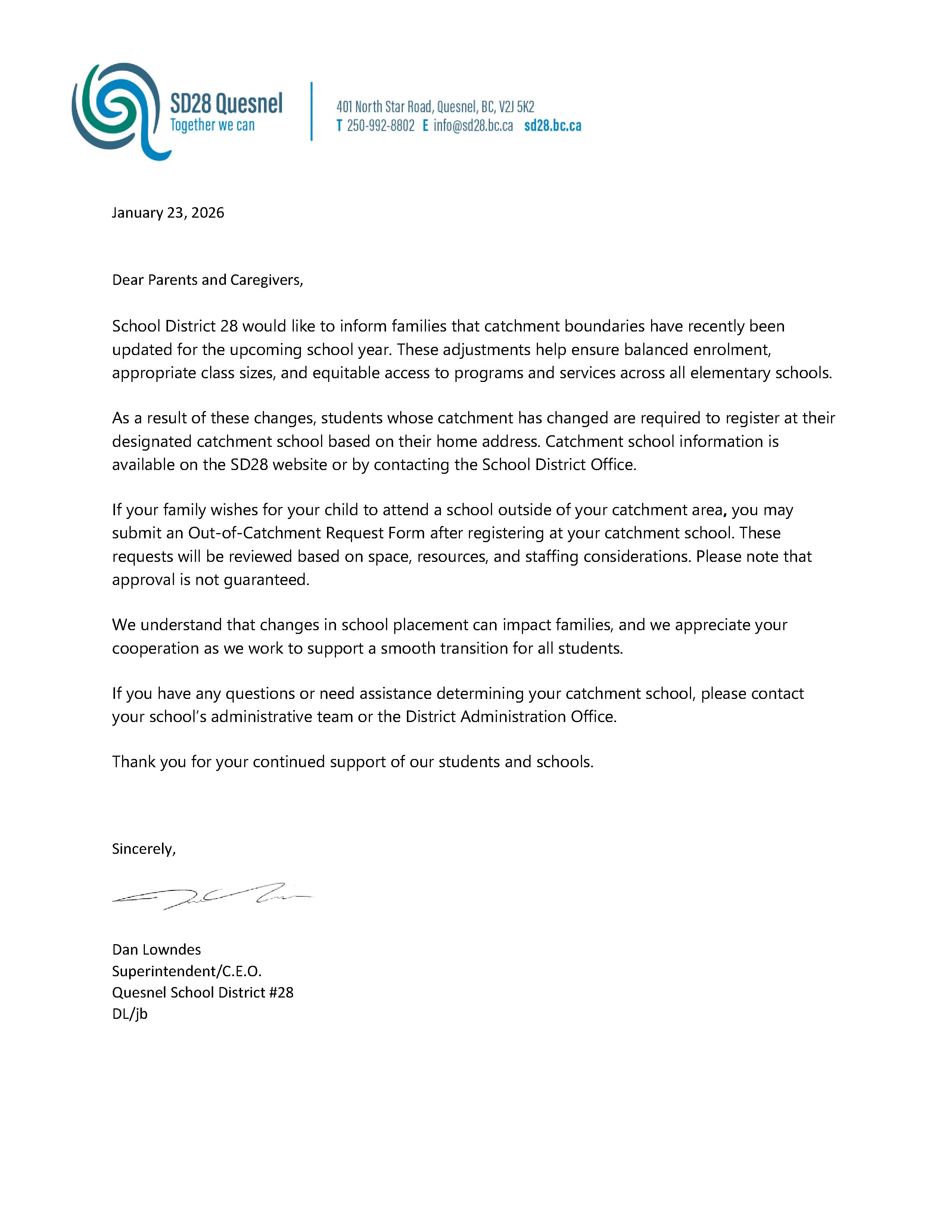 The Quesnel School District is pleased to announce the following appointments effective January 1, 2026.